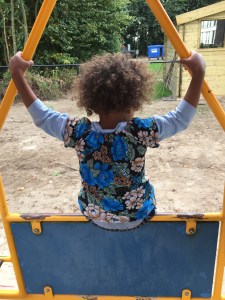 De weken daarna groeide ze enorm. Ze bleef in mijn buurt, hield me constant in de gaten, liep mee als ik een kopje thee ging halen en wachtte voor de deur van het toilet. Maar vanuit die veiligheid begon ze langzaam de school te ontdekken. Ze speelde, heel voorzichtig, met een ander kindje in de nieuwe zandbak, om vervolgens gauw weer bij mij te komen. Ze ging touwtje springen, maar hield me in het oog. Heel langzaam waande ze zich steeds veiliger, werd ze opener, blijer.