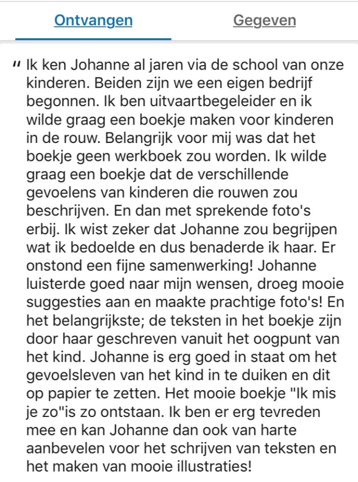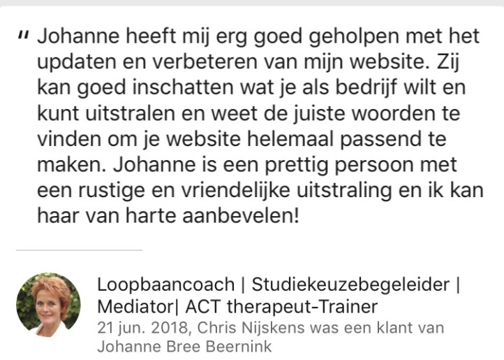 Of het nou eenmalig is of een terugkerende of langdurige opdracht, je kunt rekenen op mijn betrokkenheid, creativiteit en aandacht voor wat jíj wilt vertellen met je tekst/ website.