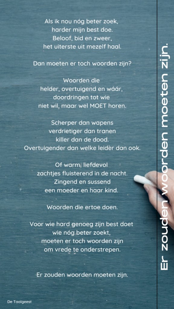 6 maart 2022 De Taalgeest Woorden Leuk? Deel! Share op Facebook (Opent in een nieuw venster) Facebook Share on LinkedIn (Opent in een nieuw venster) LinkedIn Delen op WhatsApp (Opent in een nieuw venster) WhatsApp Share on Pinterest (Opent in een nieuw venster) Pinterest Meer Share on Pocket (Opent in een nieuw venster) Pocket Email a link to a friend (Opent in een nieuw venster) E-mail Vind-ik-leuk Aan het laden...