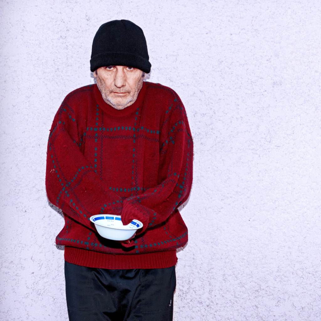 Opnieuw rinkelt er geld in het bakje. Een euro. Hij weet precies hoe hij moet kijken. Nooit direct kijken naar het geld, dan lijkt het of hij kijkt of het wel genoeg is. Altijd eerst een vriendelijke blik naar de voorbijganger die nog iets in zijn zak vond. Niet te gul lachen, niet overdrijven. Een ietwat verlegen lijkende lach is na al die jaren het beste gebleken. Mensen lachen dan terug zonder zich genegeerd te voelen. Het moeilijkst vindt hij het als mensen hem iets willen geven en er op dat moment achterkomen dat er geen kleingeld meer in hun zak zit. Ze vragen net iets te hard, zodat hij tenminste doordrongen is van hun goede bedoelingen, aan hun partner of die misschien iets heeft. Na drie keer alle zakken uitvoerig checken zeggen ze tegen elkaar dat ze de volgende keer écht even wat kleingeld mee moeten nemen om vervolgens snel en genegeerd door te lopen. Dat vindt hij nog het ergst. Dat hij geen geld krijgt daar kan hij mee leven. Dat ze hem gegeneerd en meewarig aankijken omdát hij geen geld krijgt, dat doet hem pijn. Medelijden is het laatste wat hij wil.