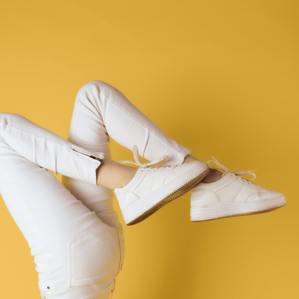 Aan de overkant van de winkelstraat loopt een jong stelletje, hand in hand. Zij draait zich in allerlei bochten in een duidelijke poging haar eigen achterwerk te zien.